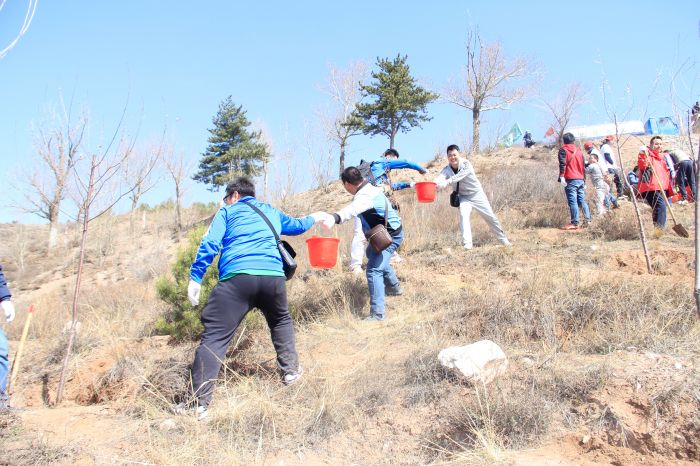 活動(dòng)現(xiàn)場(chǎng),公司團(tuán)員青年在團(tuán)委副書記郭振宇的帶領(lǐng)下,有序的加入到植樹活動(dòng)的行列中,植樹現(xiàn)場(chǎng)一派熱火朝天,大家干勁十足,配合默契,三人一隊(duì),五人一組,忙的不亦樂乎。在綠化技術(shù)人員的指導(dǎo)下,大家分工協(xié)作,有的挖坑,有的扶苗,有的培土到處都是忙碌的身影。大家不顧鞋褲上的泥土,一起揮鍬揚(yáng)土,把一棵棵樹苗穩(wěn)穩(wěn)地栽好,并精心地把土踩實(shí),為它們澆灌生命之水,經(jīng)過一個(gè)半小時(shí)的辛勤勞動(dòng),共栽植30余棵山桃樹,大家用自己的行動(dòng)和汗水把青年林裝點(diǎn)得更加生機(jī)盎然。